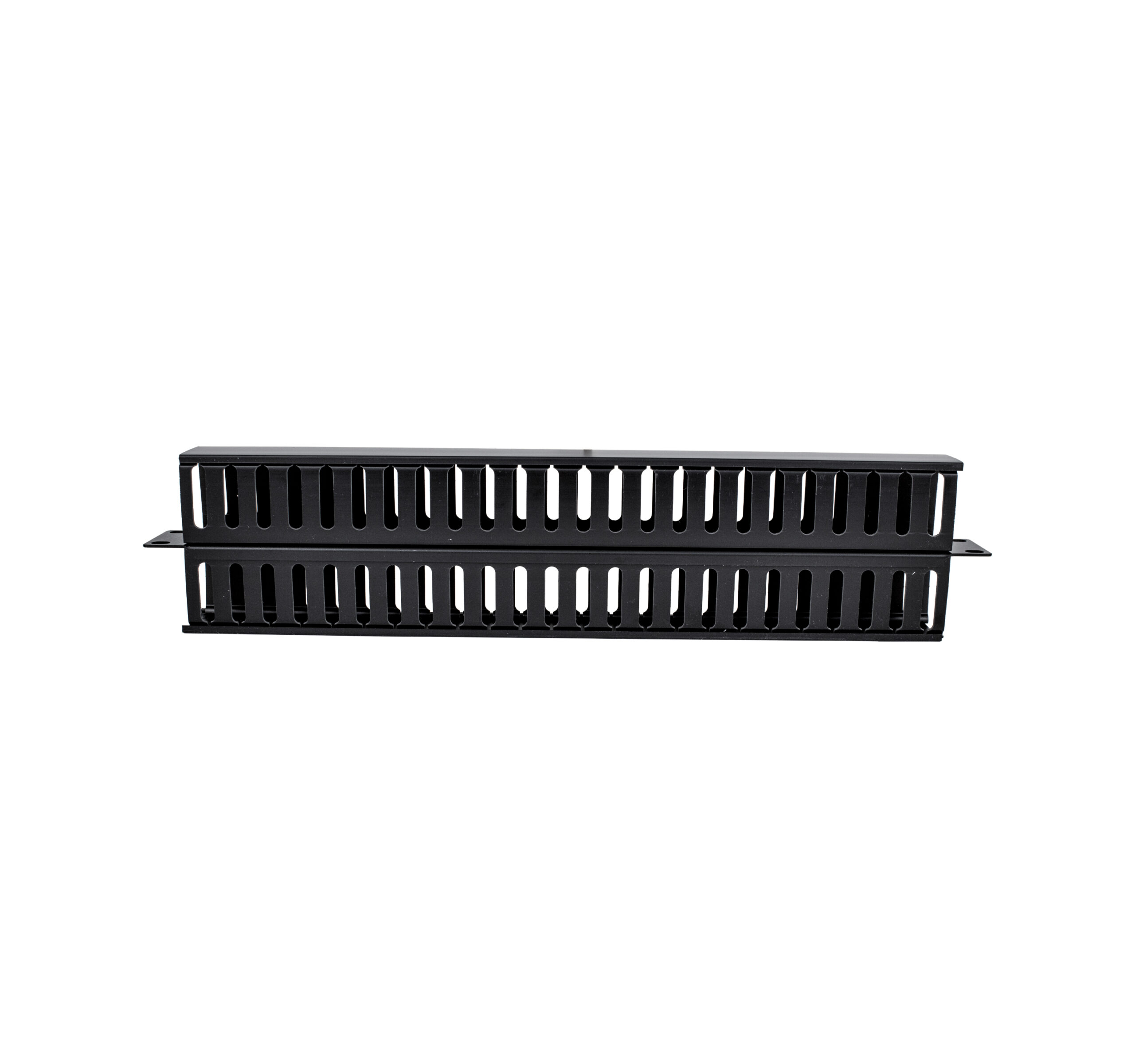 The 044-2391/DS/1U is a 1 RMU, double-sided horizontal cable manager for standard 19 in. (482.6 mm) racks and wall mounts. It features durable steel mounting construction and plastic fingers to keep patch cords neatly organized and accessible. A perfect fit for server cabinets, network racks, or any IT setup needing structured cable routing. Easy to install and supplied with M6 mounting screws, this unit is ideal for managing front and rear cable runs.