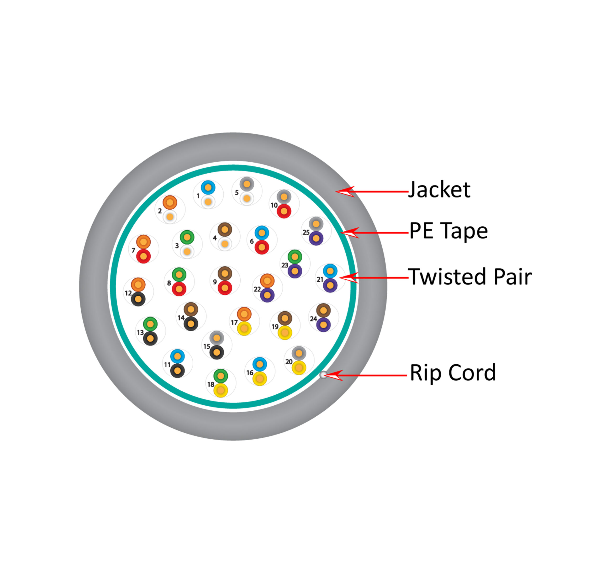 - Color-Coded Pairs: Organized to industry standards for accurate terminations.