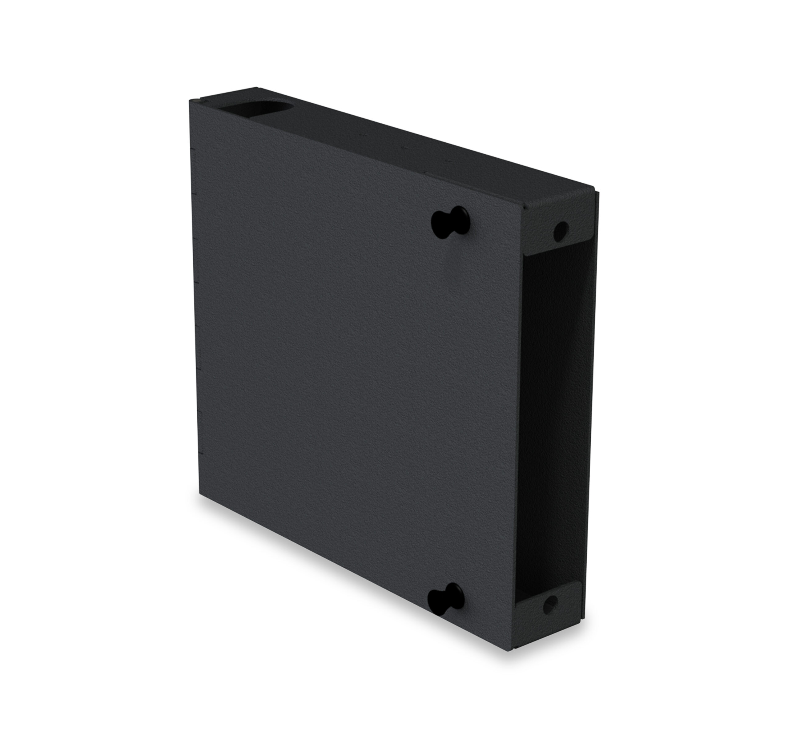 The 268-SMB01-1A1 is constructed from high-quality 1.5-mm (15-GA) aluminum alloy and features a sleek black powder coating. This design not only enhances its longevity but also gives it a professional appearance, making it suitable for any environment. The box is capable of housing one LGX adapter plate, providing space for up to 24 optical fibers and supporting up to two 12-fiber splice holders, making it a highly functional choice for fiber optic management.
