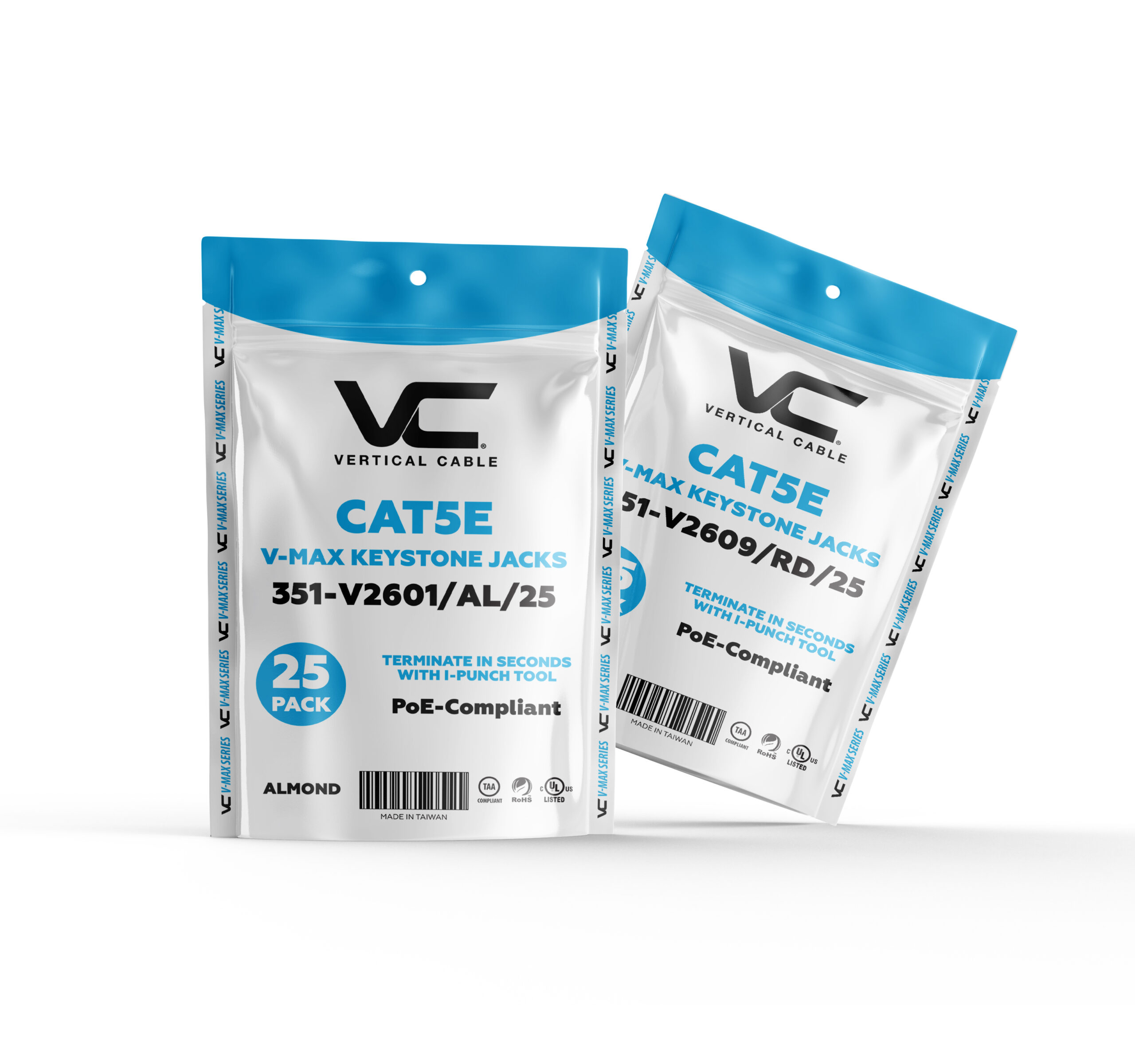 The 351 Series V-Max CAT5E Keystone Jack delivers high-performance connectivity in a compact, unshielded form. Designed to exceed industry standards, this jack supports PoE, high-density installations, and long-term reliability for commercial and government-compliant networks.